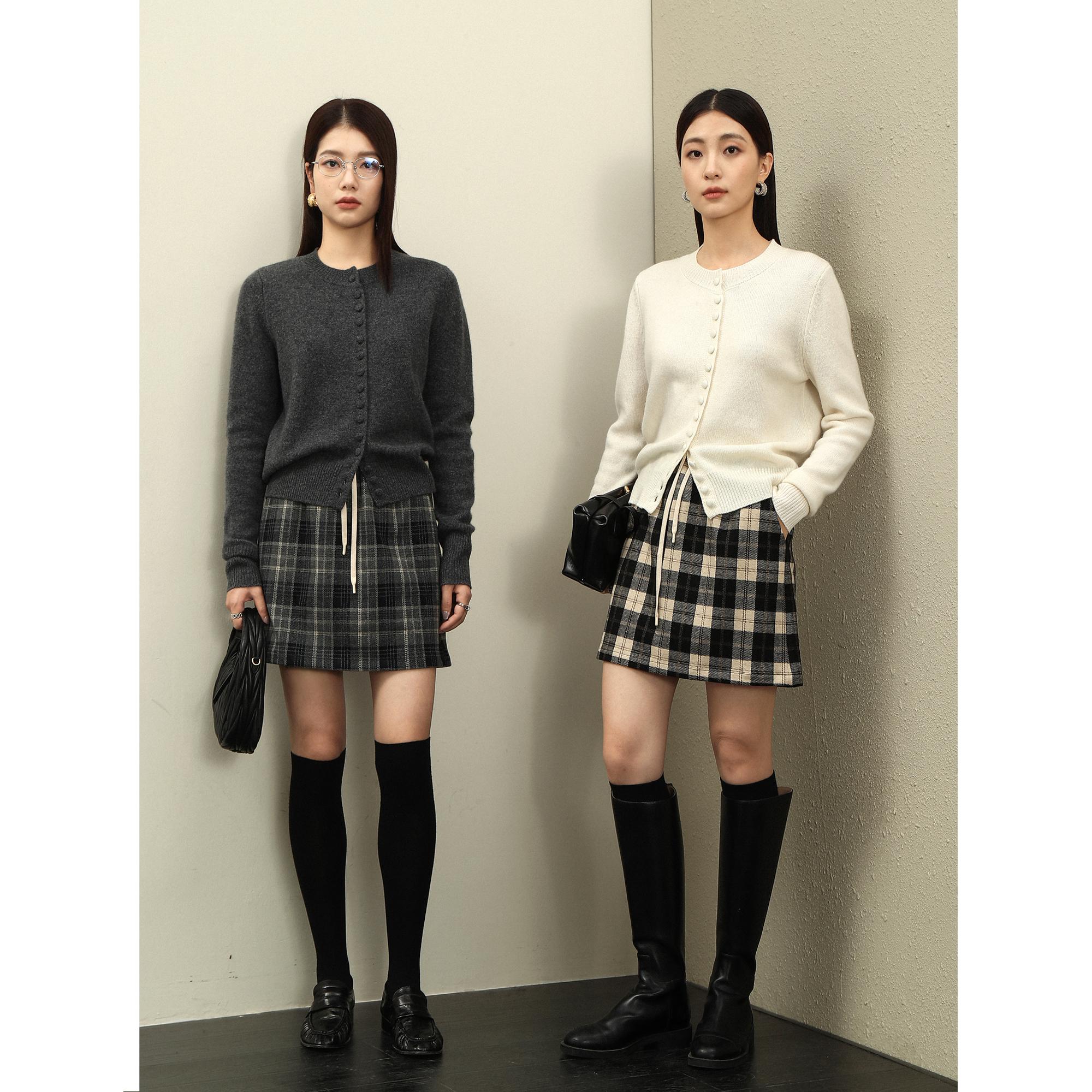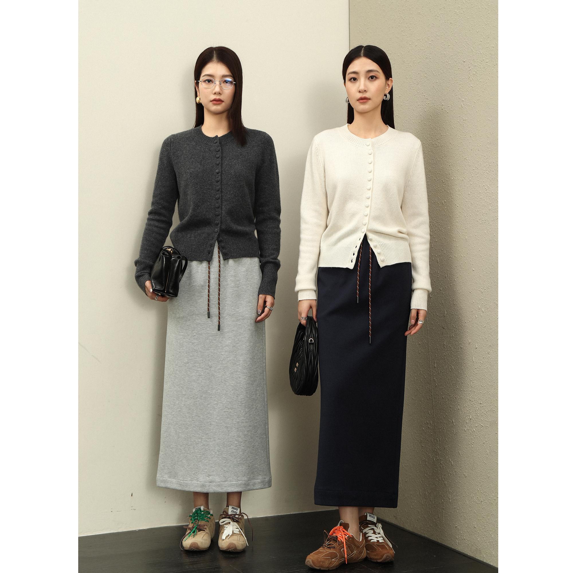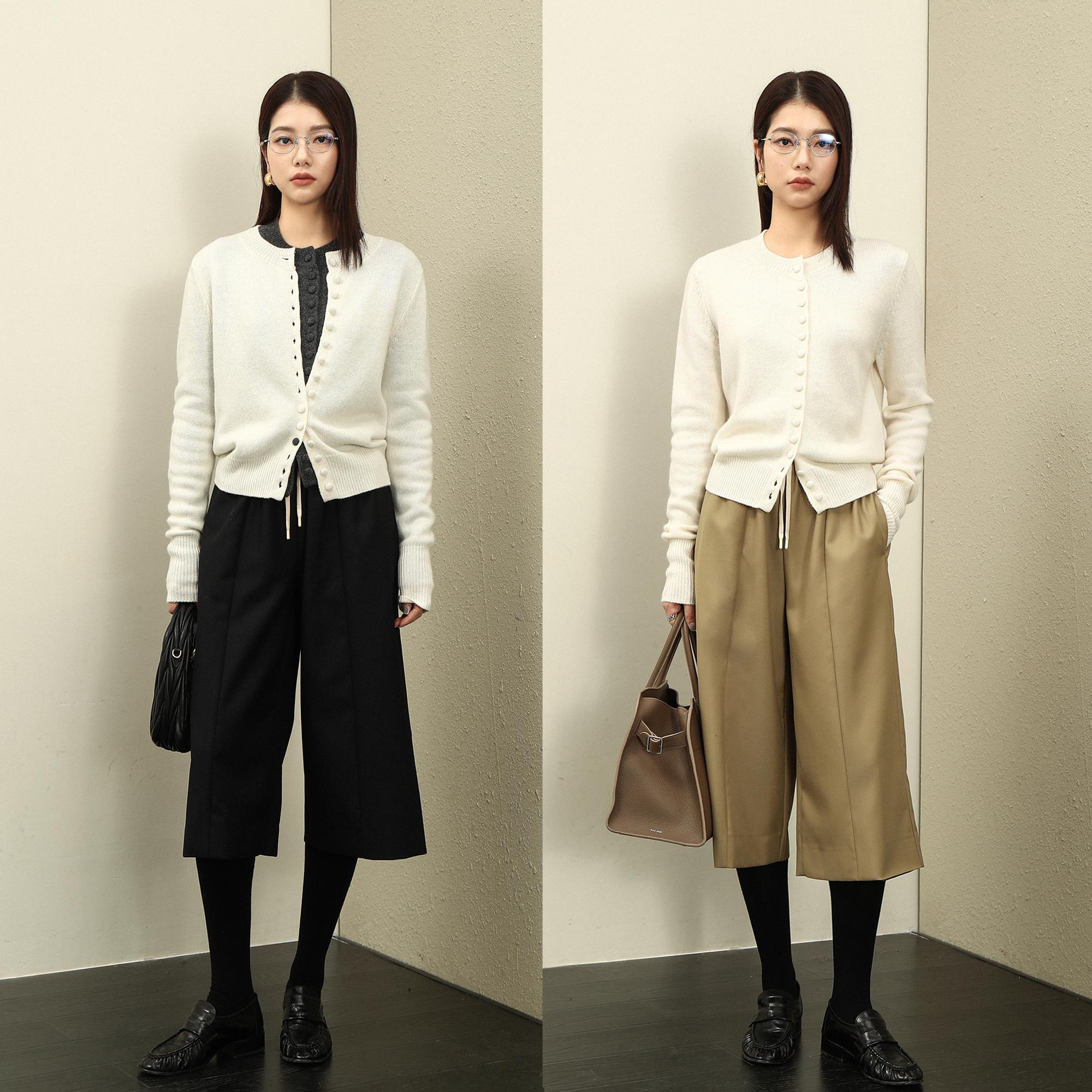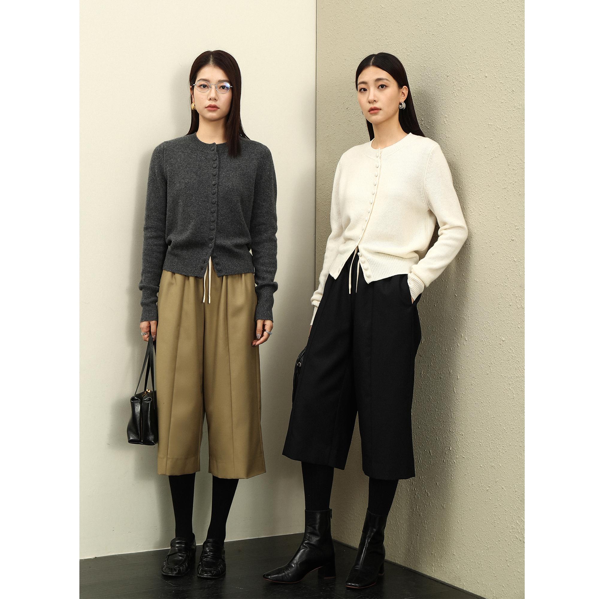 FANLE STUDIOS秀款prad@时髦叠穿立体包扣全羊毛针织衫开衫毛衣女