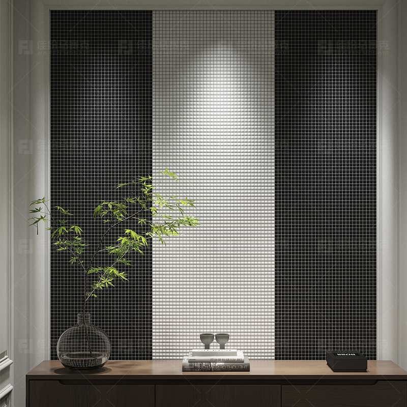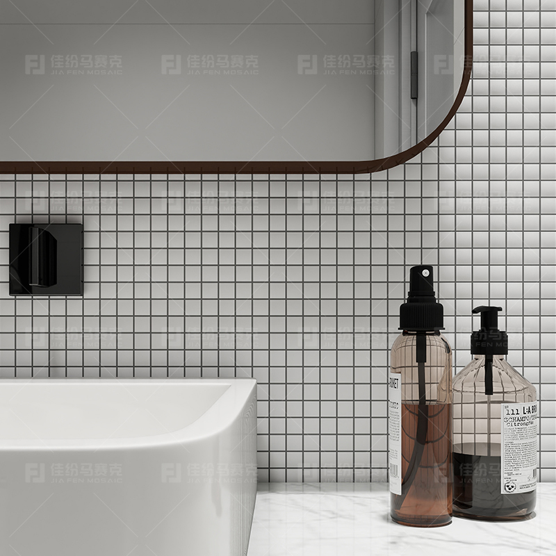 佳纷纯黑白小颗粒马赛克哑光瓷砖