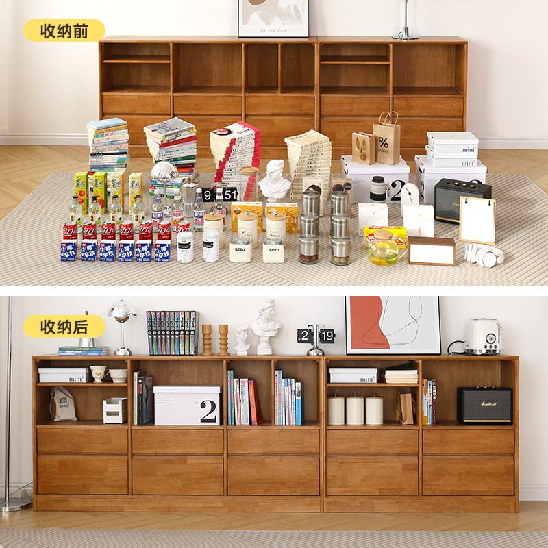 书柜储物柜一体实木整墙组合矮柜不占地方网红斗柜收纳卧室床尾柜