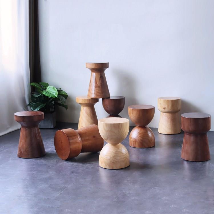 实木墩子原木凳子北欧边几圆形摆件树墩根雕民宿矮凳树桩床头柜
