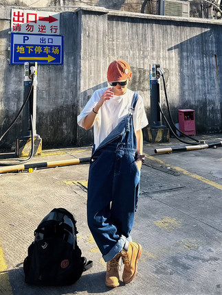 XBRO美式复古重磅宽松中性丹宁情侣学生四季连体牛仔背带裤长裤bf