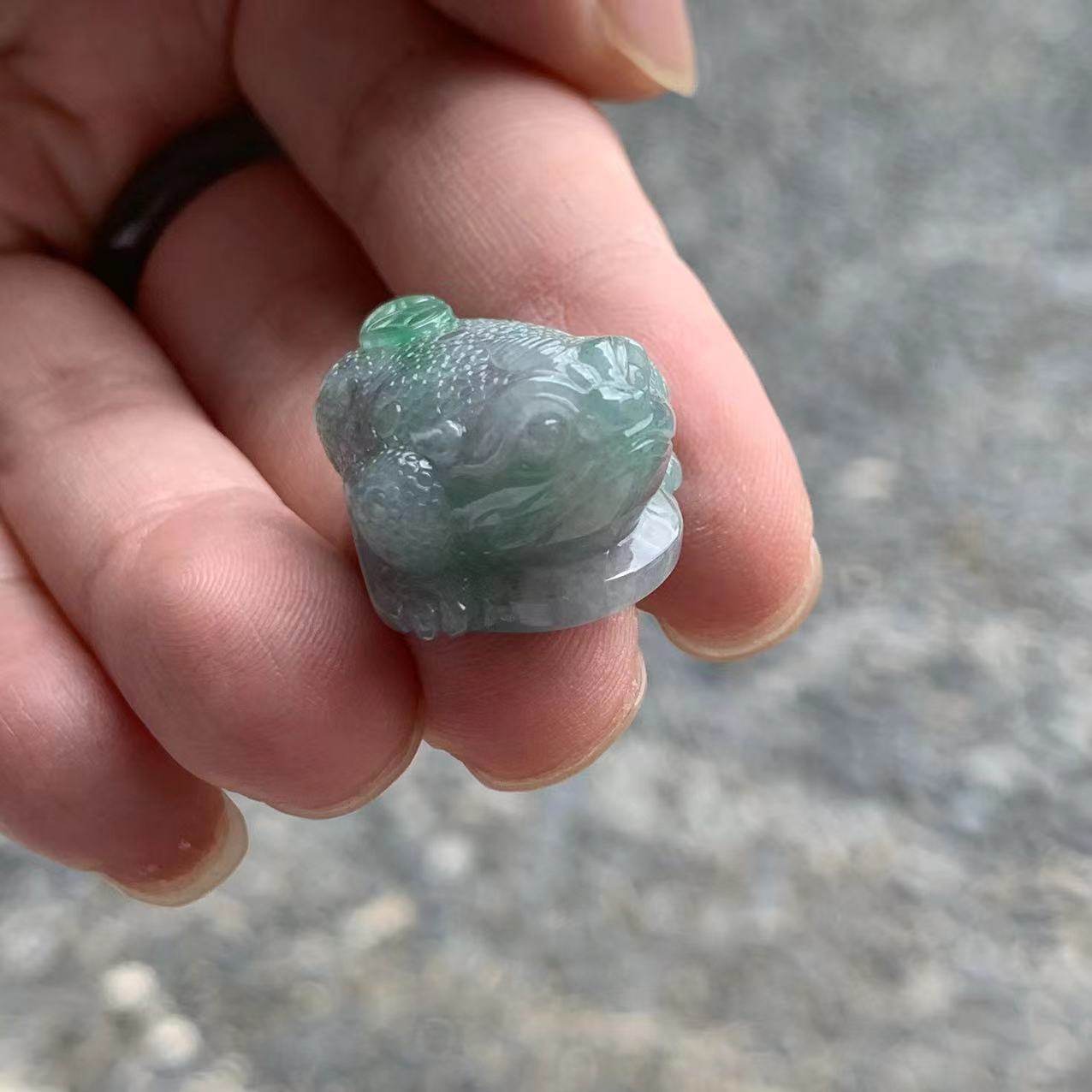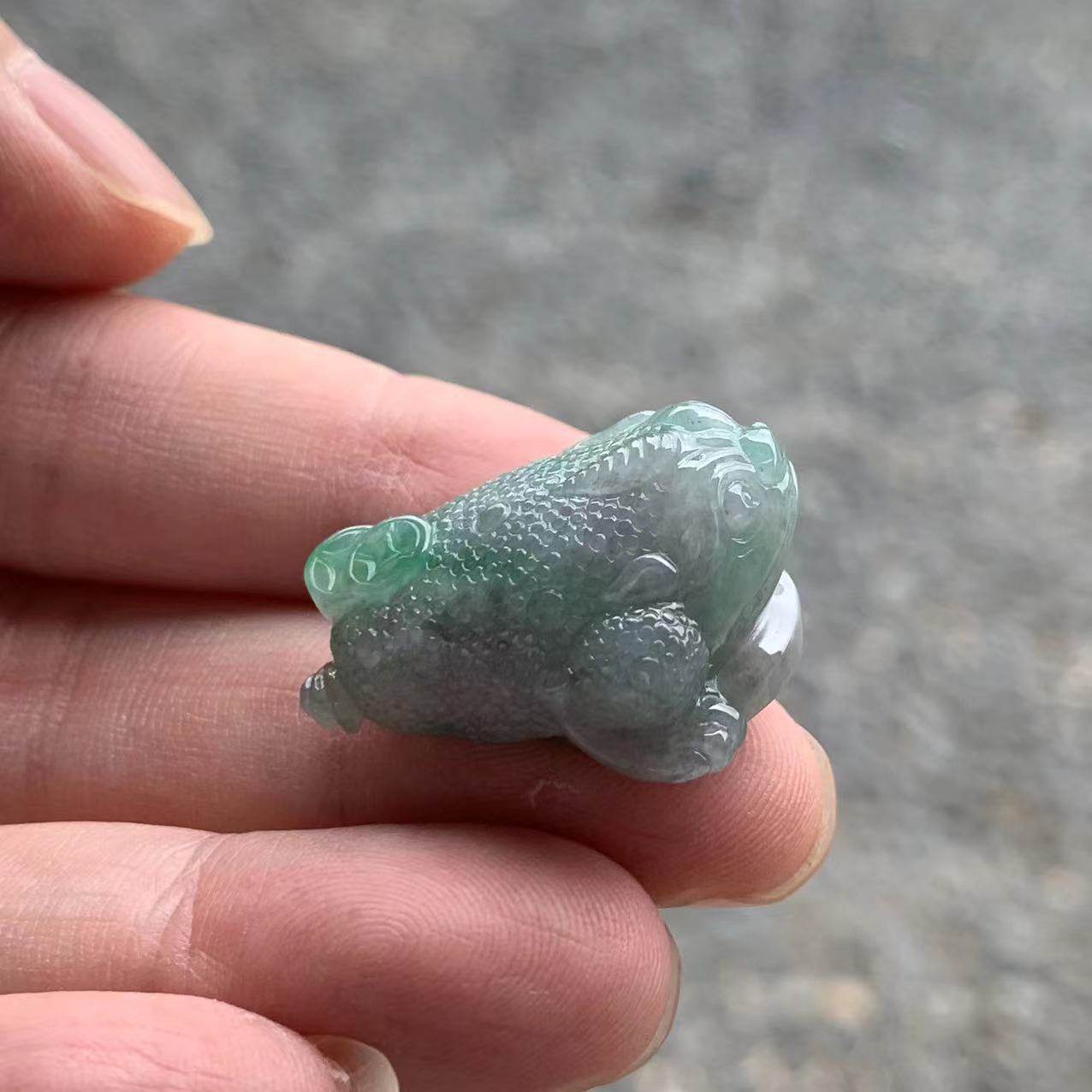 缅甸A货翡翠吊坠糯冰黑乌鸡金蟾