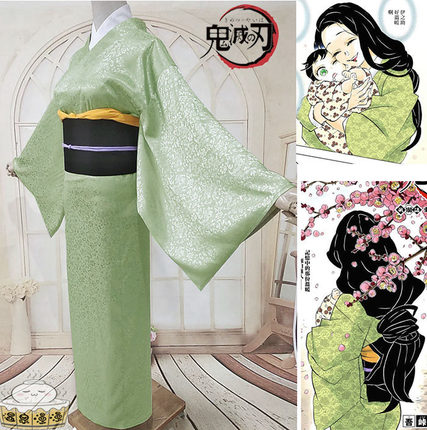 温泉漫漫鬼灭cos服鬼杀队之刃伊之助母亲cos琴叶绿色女装和服