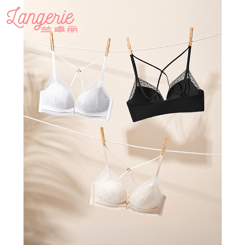 兰卓丽交叉美背内衣女小胸聚拢显大纯欲性感蕾丝文胸无钢圈胸罩女