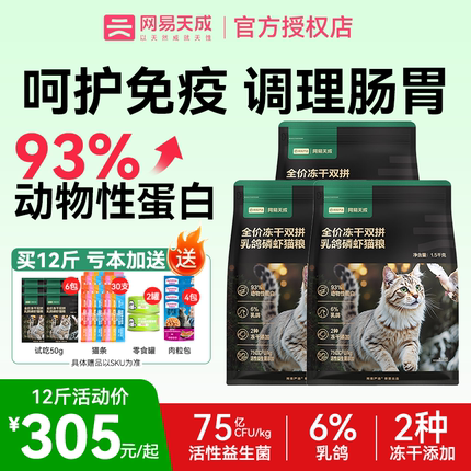 网易天成全价猫粮乳鸽冻干双拼磷虾美毛益生菌成幼猫严选旗舰新品