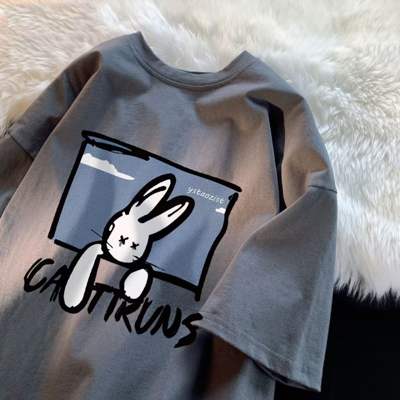 短袖t恤男夏季新款卡通宽松五分半袖潮牌百搭ins体恤小众上衣