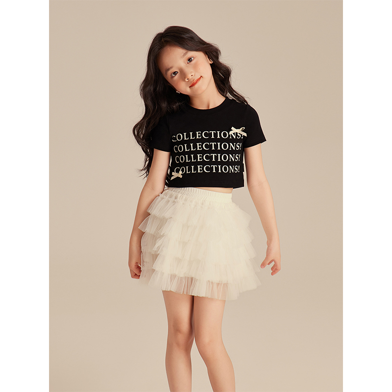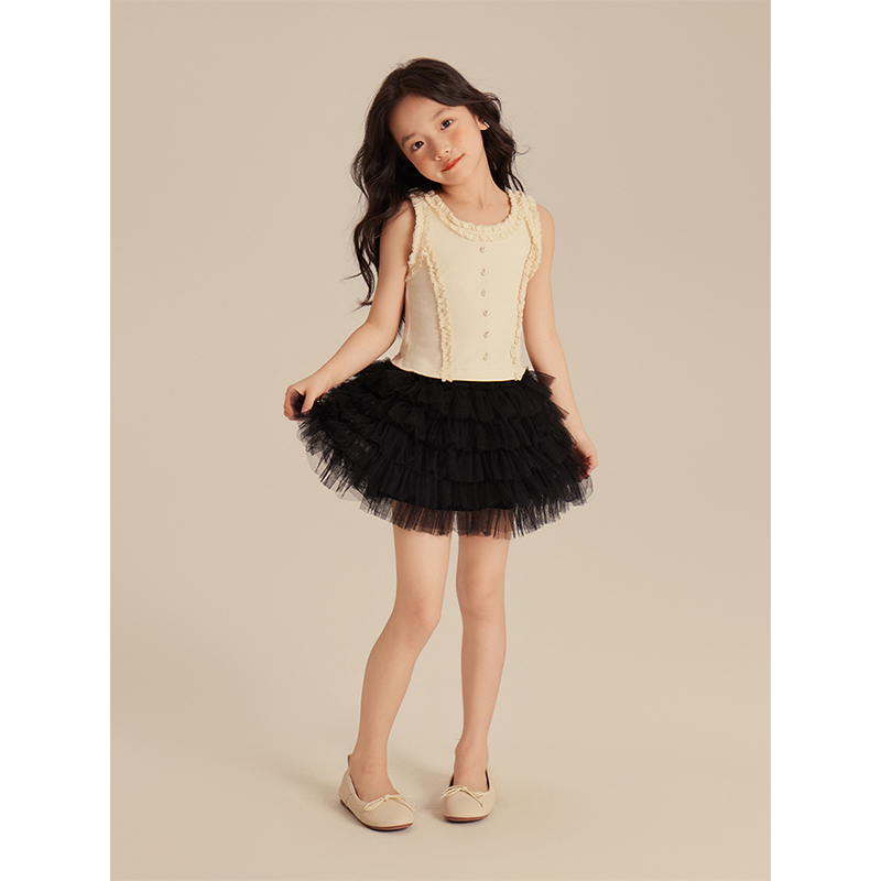 Amybaby女童半身裙夏季新款洋气纯色蛋糕裙网纱公主裙防走光短裙