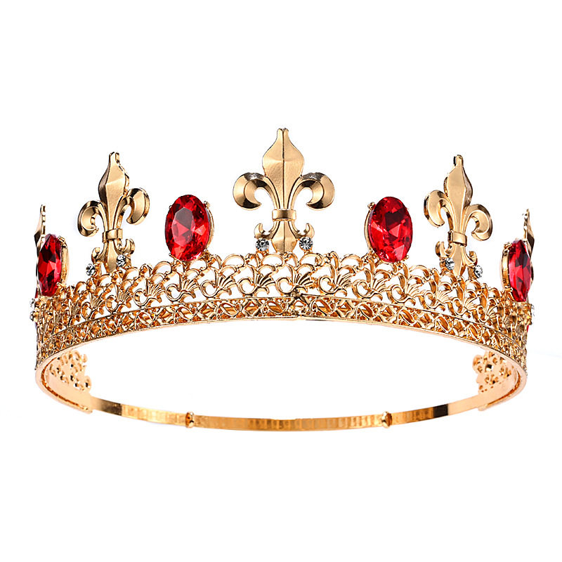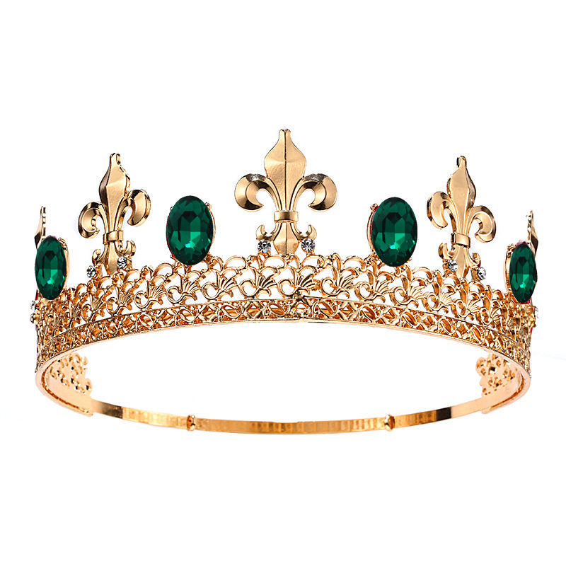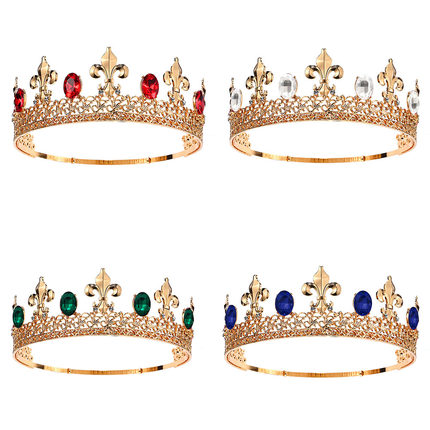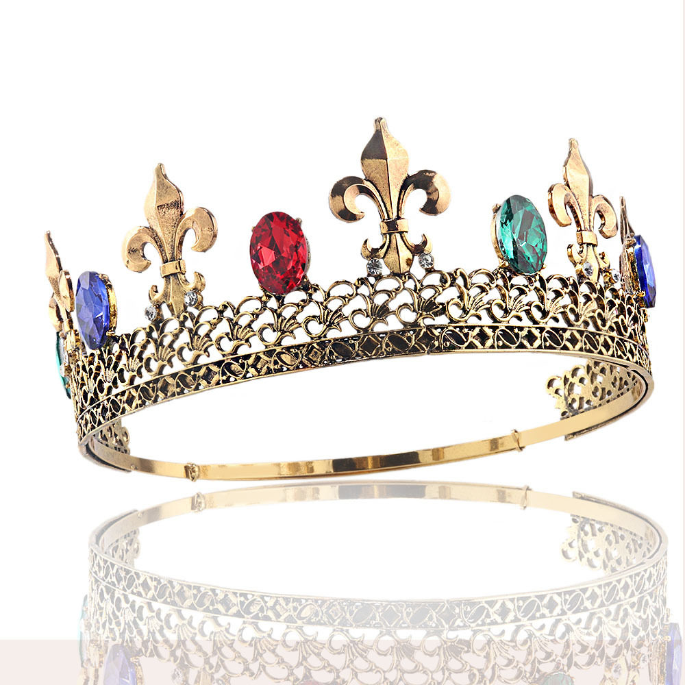 男士国王巴洛克彩色风格王冠金色枪尖造型大号水晶圆满皇冠头饰