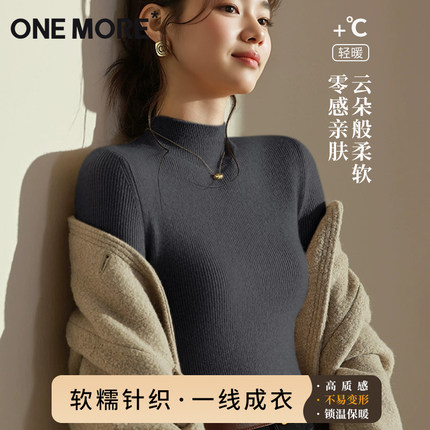 one more半高领针织衫女秋冬2025新款淡人高知穿搭灰色毛衣内搭X