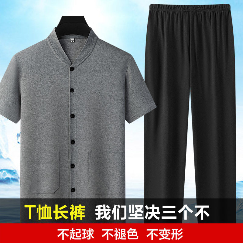 中年爸爸短袖开衫长裤套装