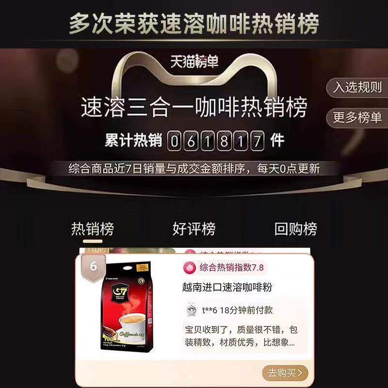 G7coffee速溶3合1咖啡罗布斯塔豆微研磨越南进口原装提神带甜味