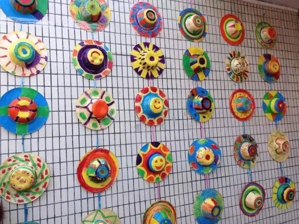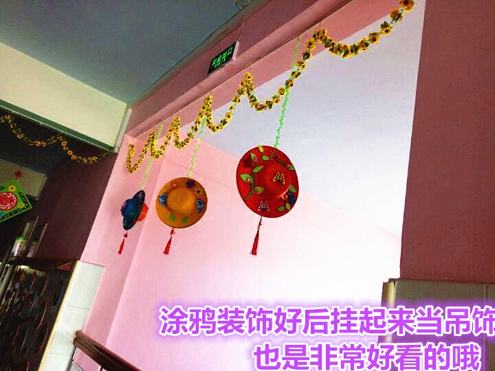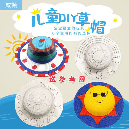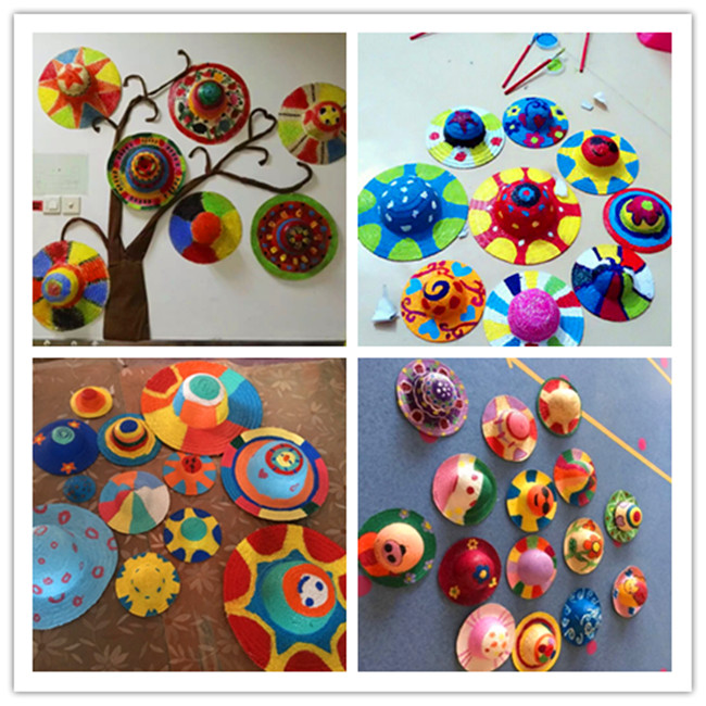 幼儿园学校墙面布置装饰吊饰创意美术材料绘画 小朋友DIY涂鸦草帽