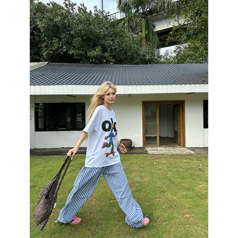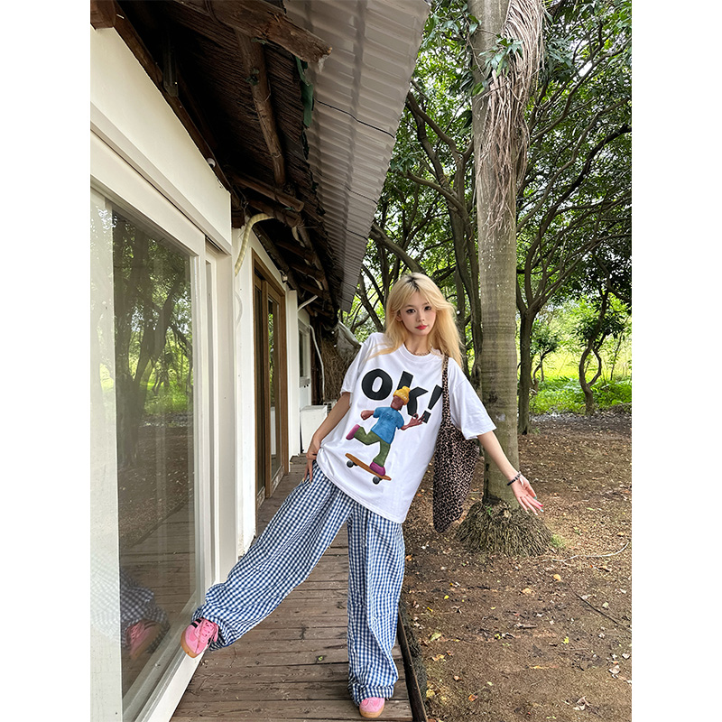 NECOYEP 2025美式复古趣味字母印花短袖T恤情侣宽松休闲百搭上衣