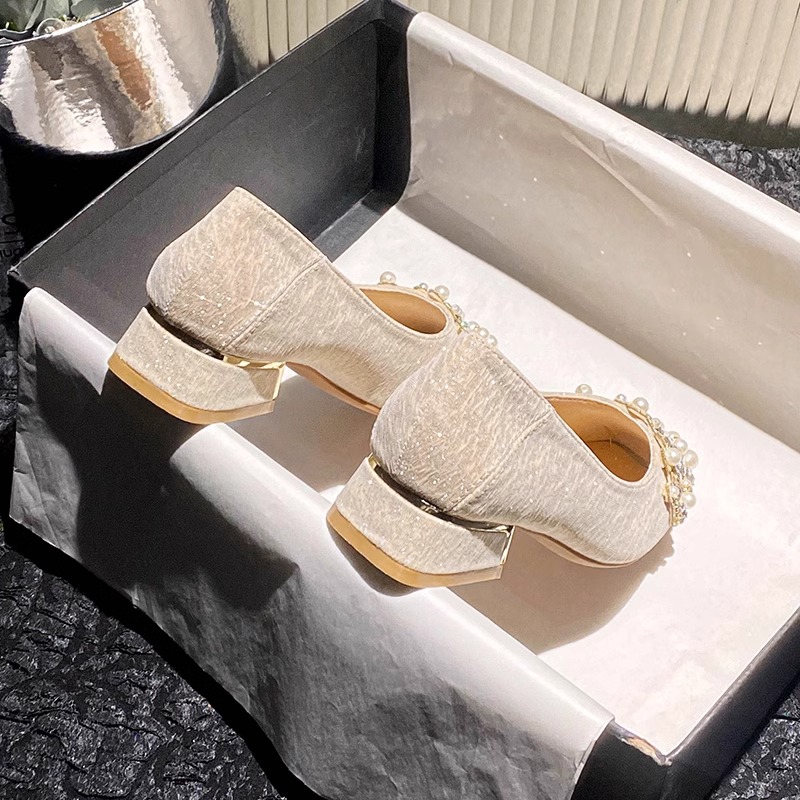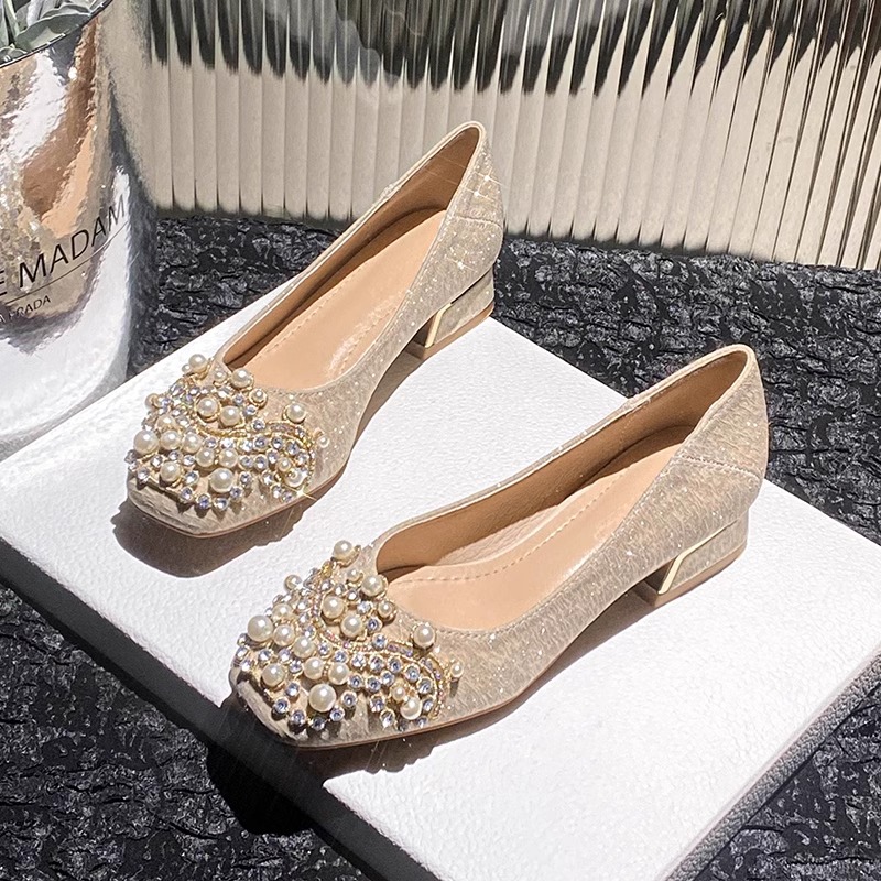 低跟法式气质单鞋女2025新款方头浅口粗跟配裙子结婚新娘秀禾婚鞋