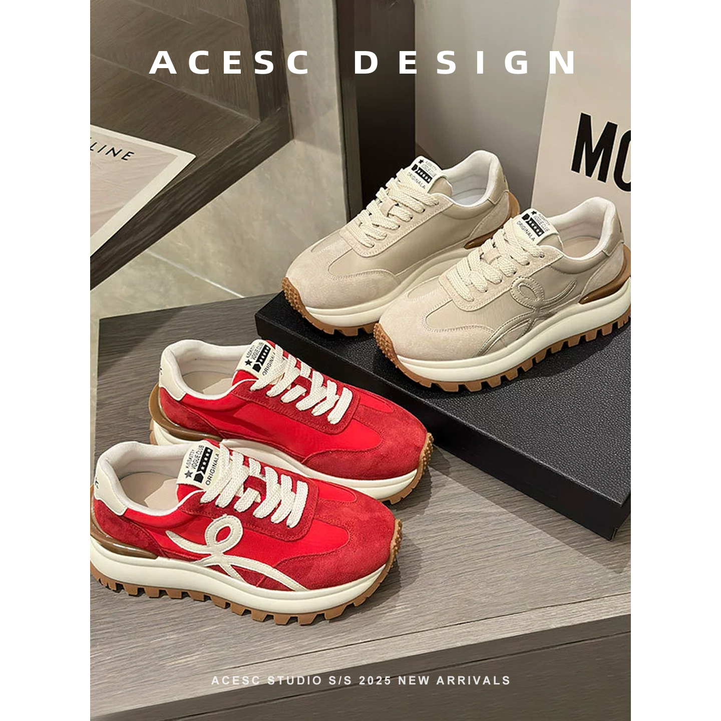 欧洲站2025学院风阿甘鞋女休闲真皮厚底ins潮红色跑步百搭运动鞋