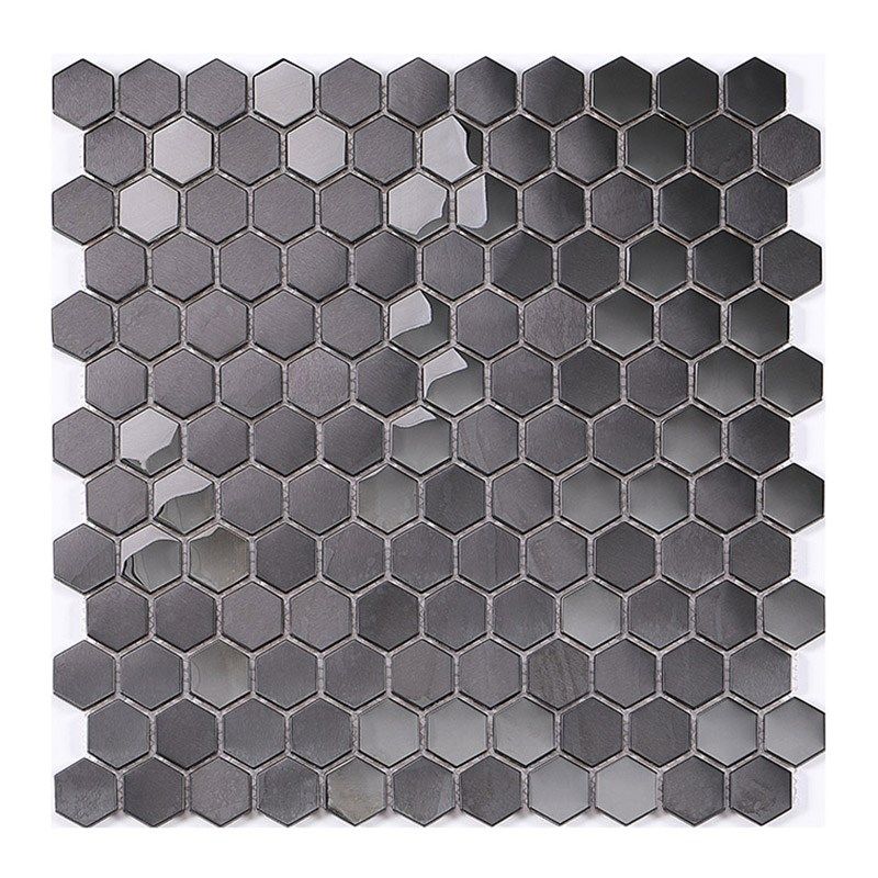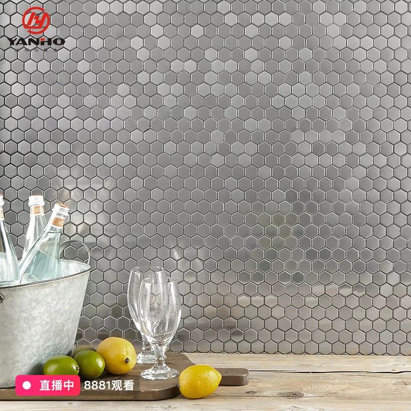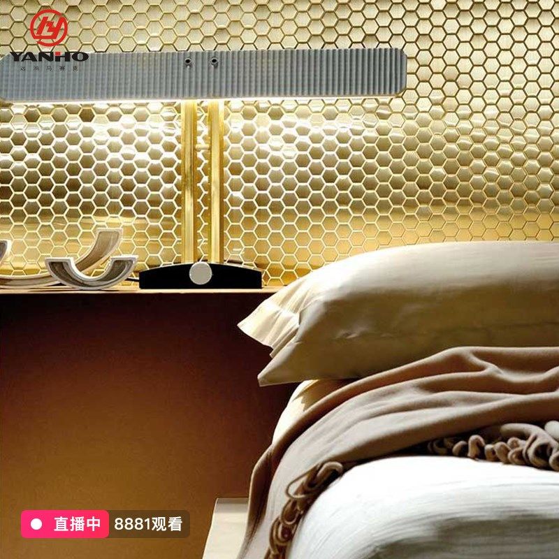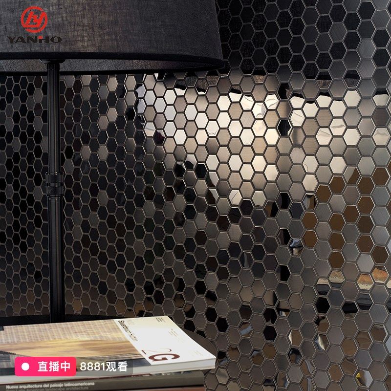 金属不锈钢金色六角形瓷砖马赛克镜面拉丝墙贴立体电视玄关背景墙