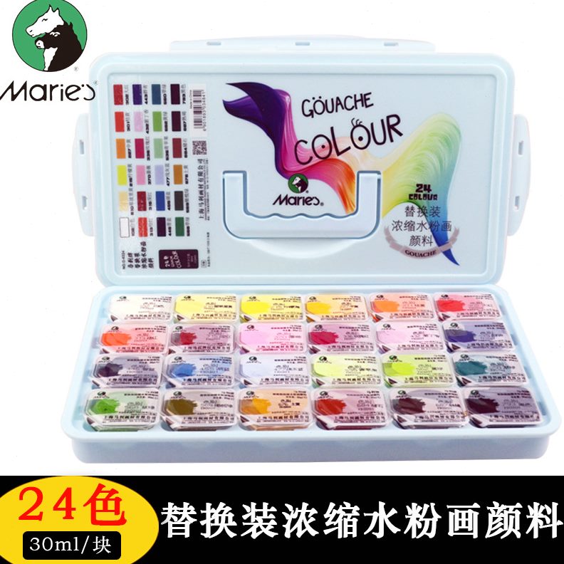 甄选马利牌24色30ML果冻水粉颜料浓缩广告画颜料便携手拎艺考颜料