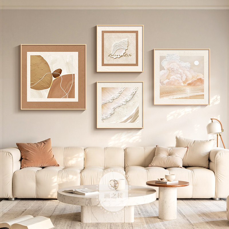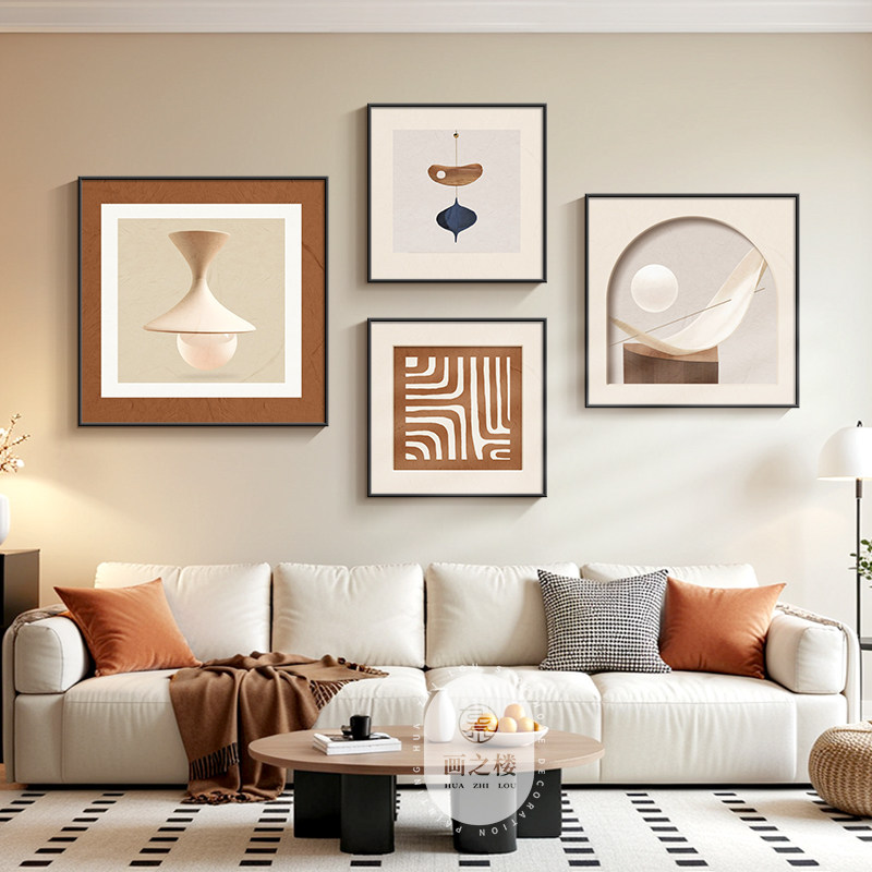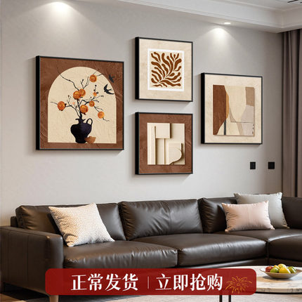 柿柿如意客厅挂画复古高级感大白墙沙发背景装饰画小众艺术组合画