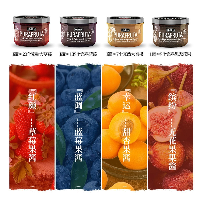 进口helios喜璐蓝莓果酱0添加蔗糖草莓酱无花果低脂早餐涂抹面包