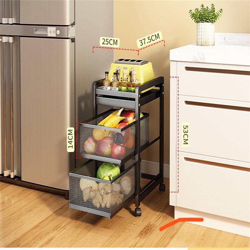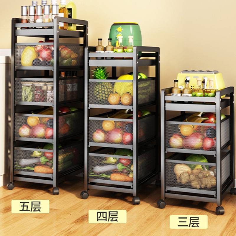 厨房菜篮子置物架落地多层抽屉式菜架抽拉夹缝蔬菜收纳储物架