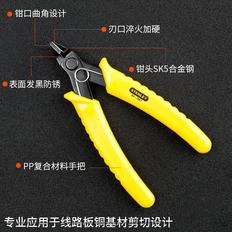 史丹利水口钳6寸电子剪钳塑料模型剪切钳薄刃斜口钳斜嘴钳剥线钳