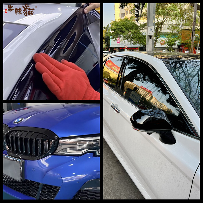 汽车镀络条亮条黑化改色ABC柱亚光磨砂亮光黑车顶后视镜中网贴膜