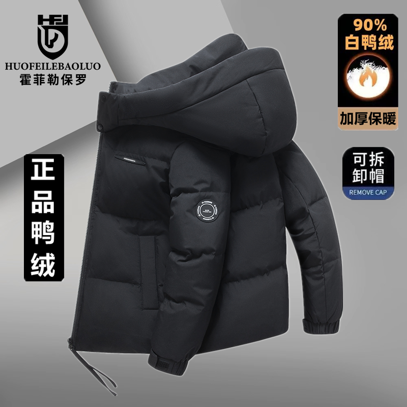 保罗正品冬季加厚白鸭绒男士羽绒服短款休闲宽松大码青年保暖外套