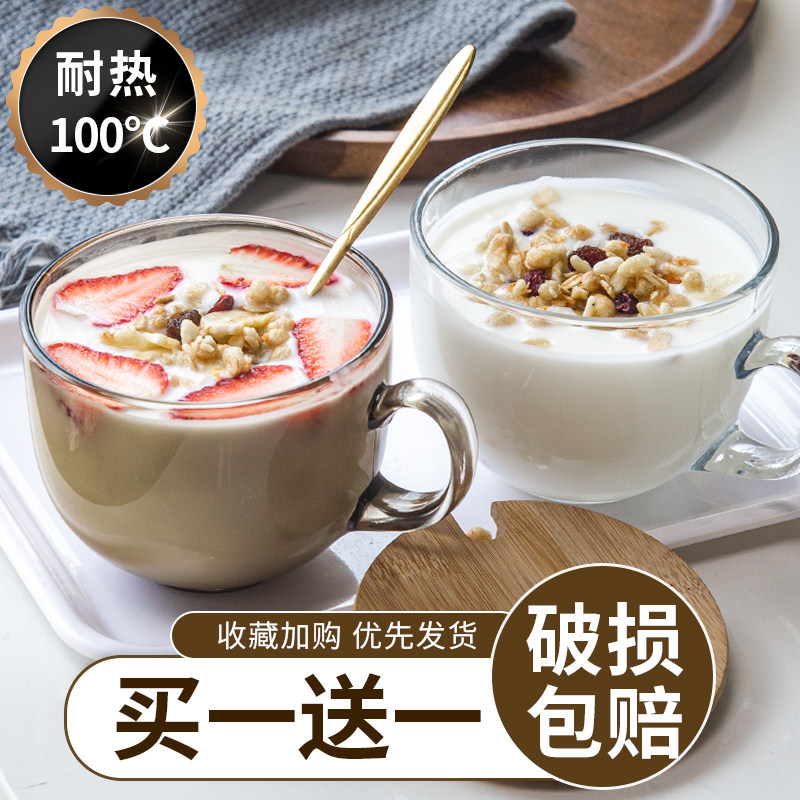 茶色酸奶燕麦早餐杯子玻璃杯水杯女家用大容量牛奶杯咖啡杯带盖勺