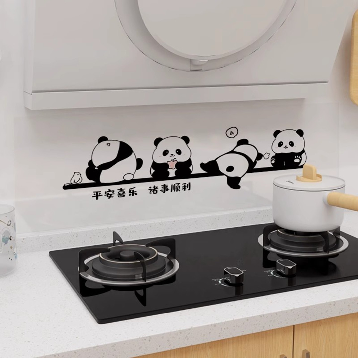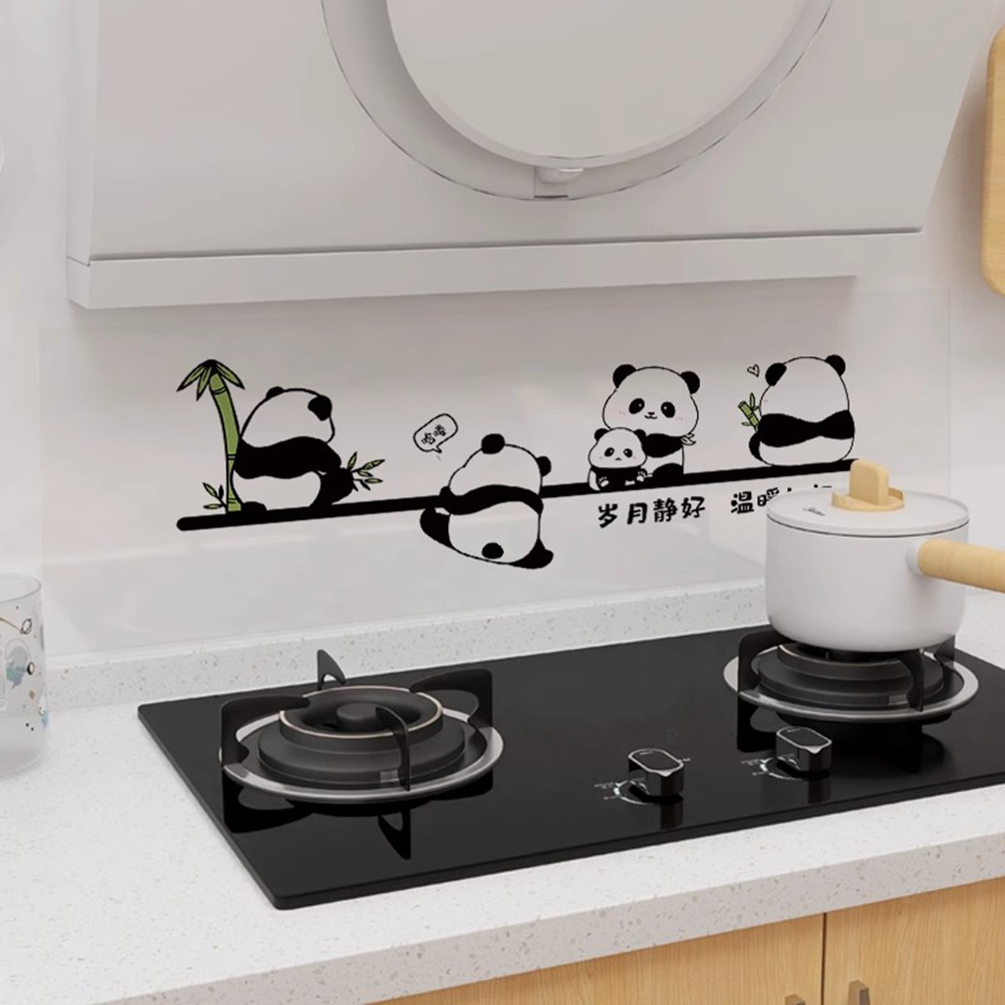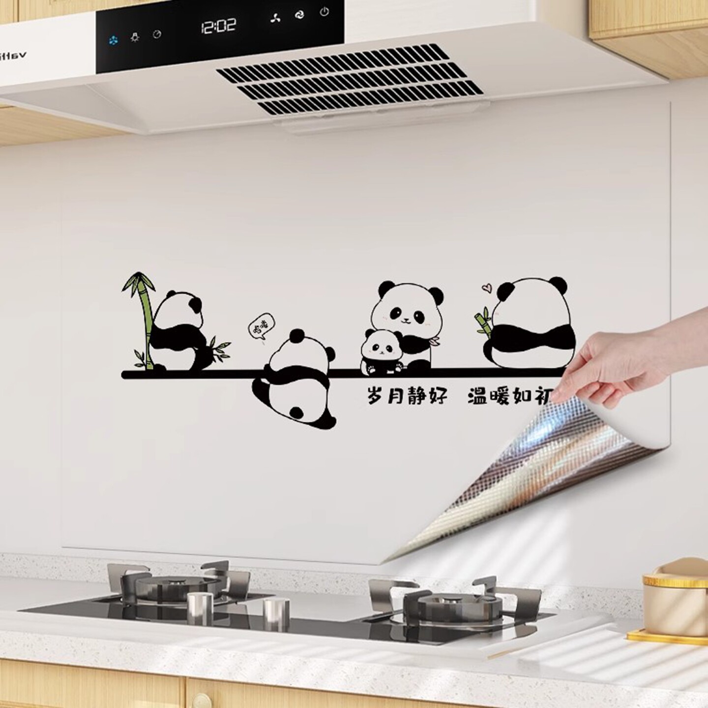 静电铝箔厨房防油熊猫贴纸油烟机灶台墙壁纸橱柜贴纸防水防油自粘