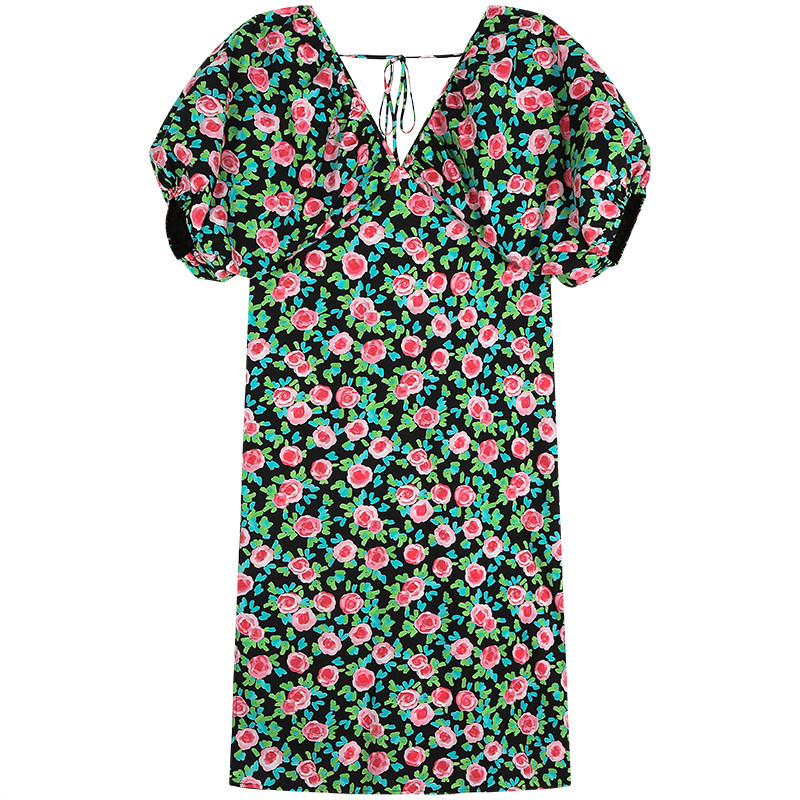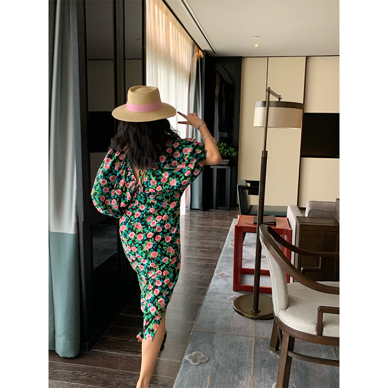 落落狷介开叉设计感碎花连衣裙女