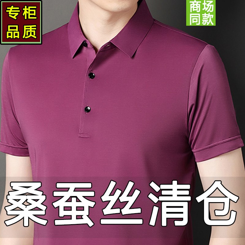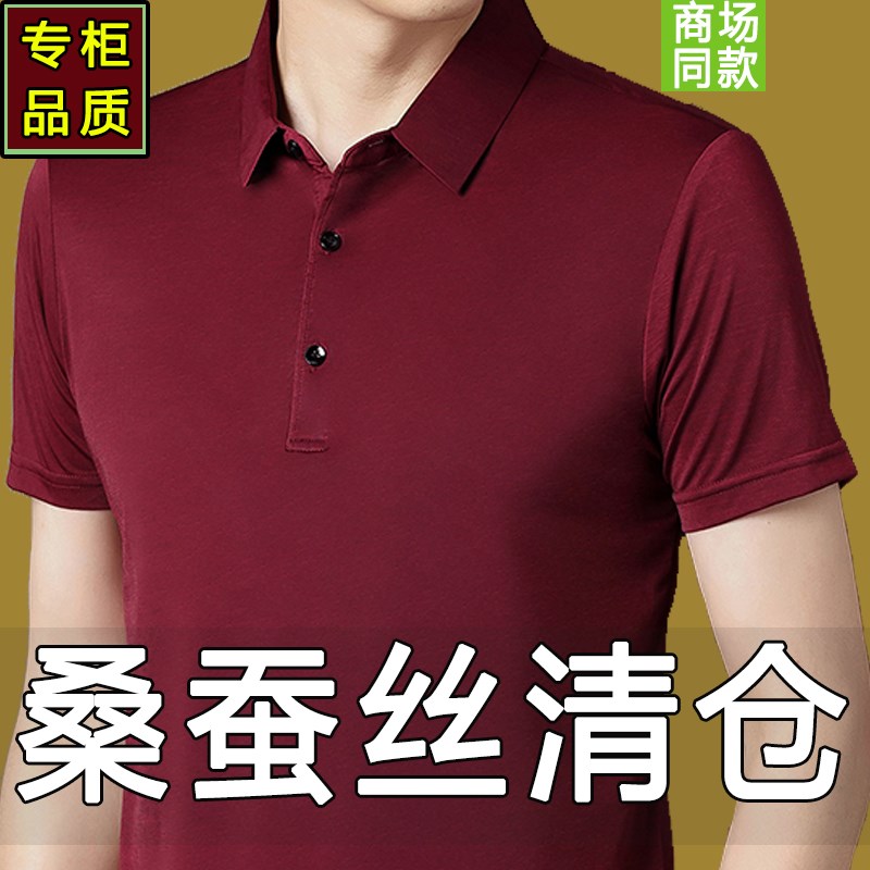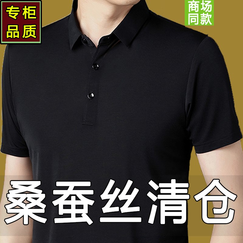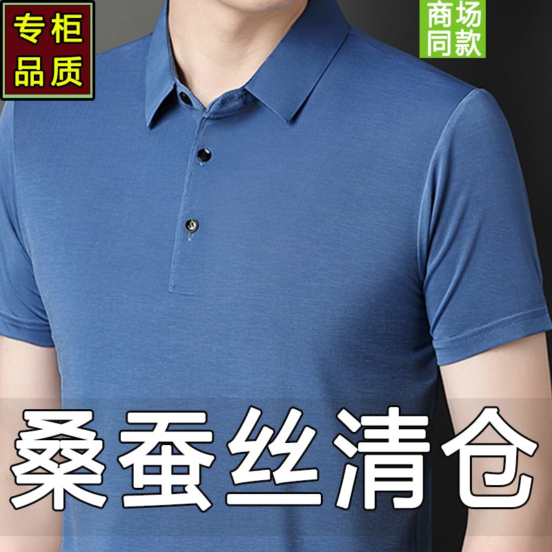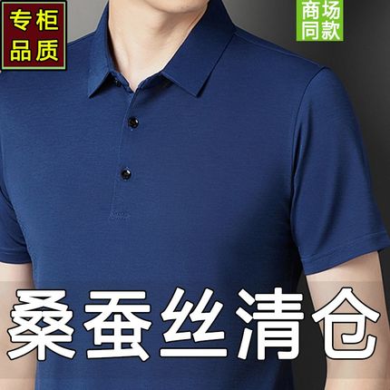 夏季桑蚕丝男士短袖t恤2024新款中年真丝薄款冰丝PoVlo衫爸爸夏装