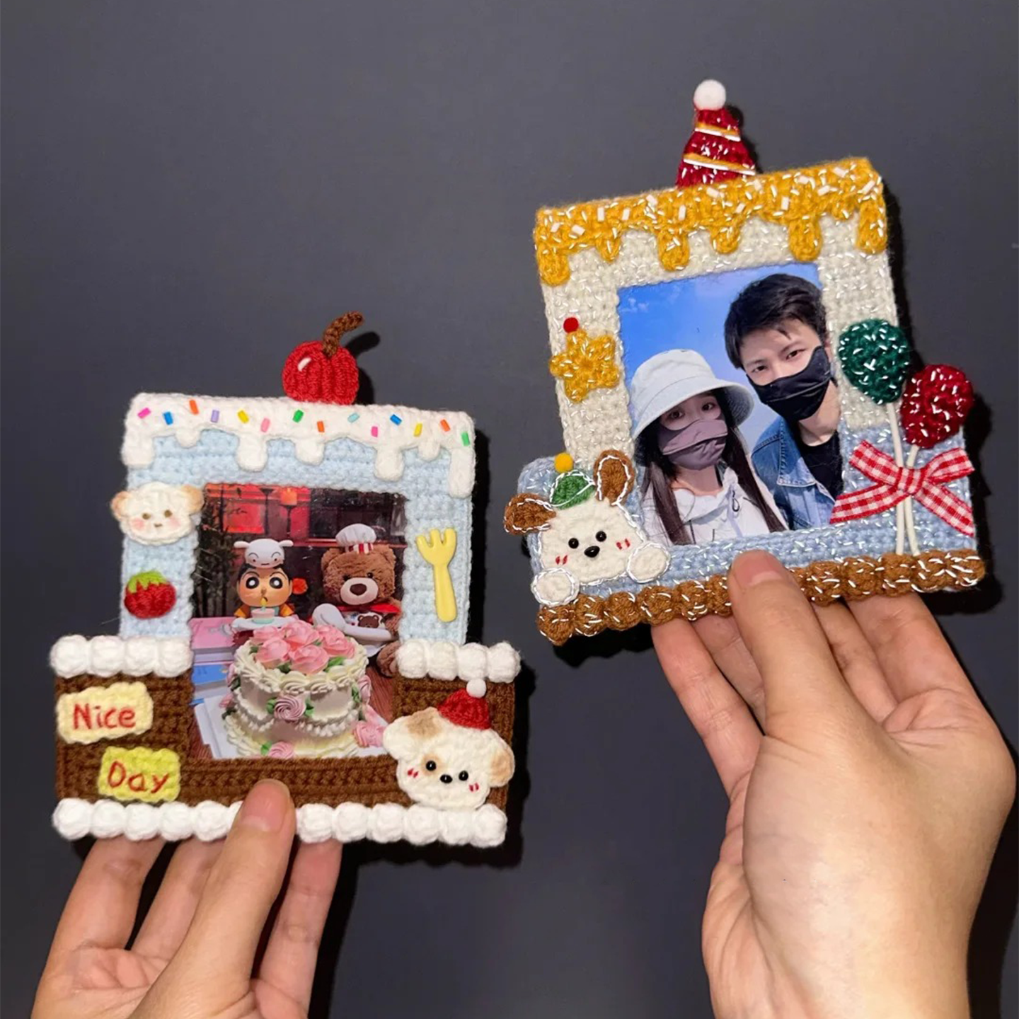 卡套相框手工钩织挂件毛线编织摆件办公室可爱送朋友DIY材料包