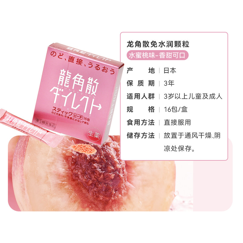 【自营】日本龙角散颗粒清咽利喉润嗓缓咳止咳水蜜桃味8盒