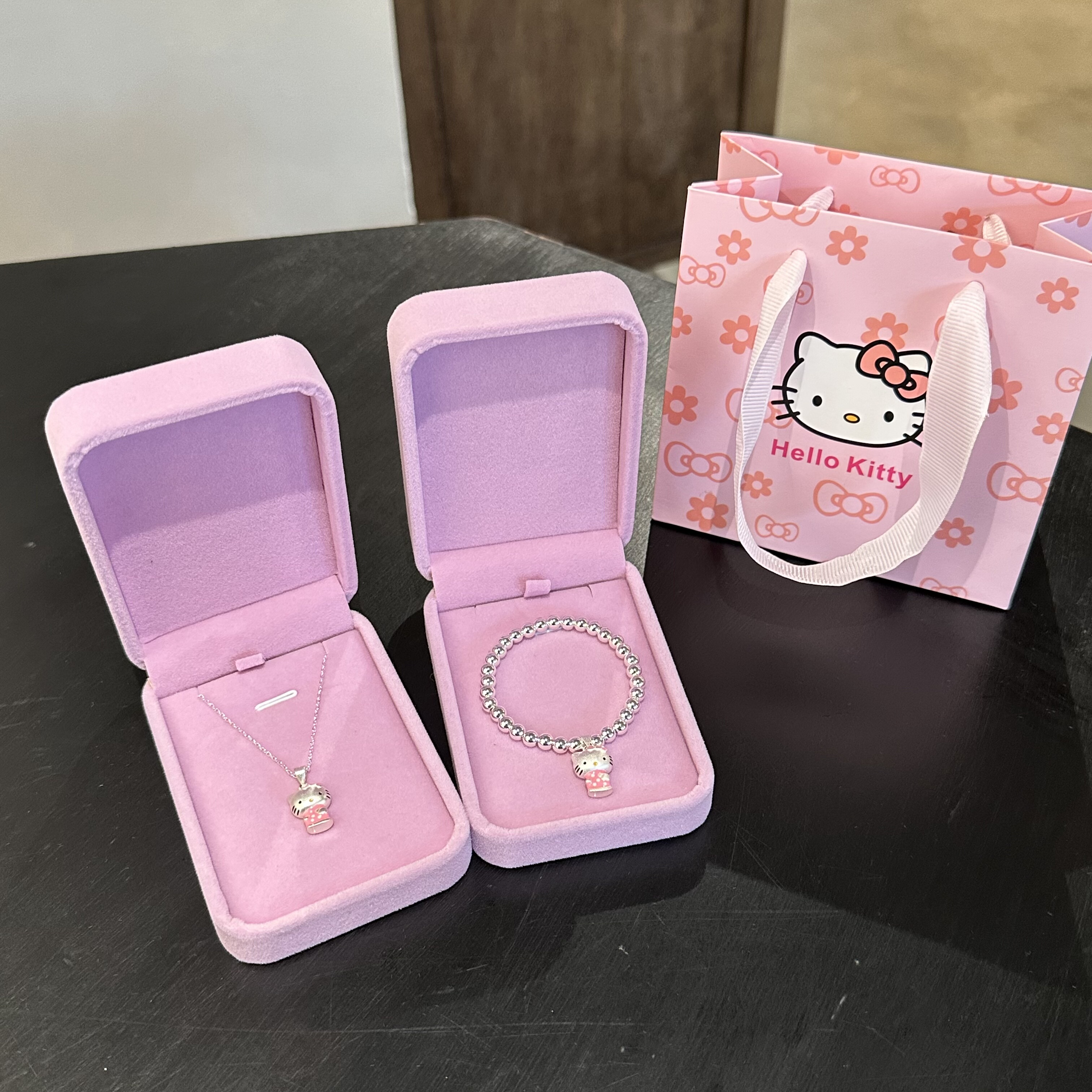 Kitty猫纯银项链手链套装女生儿童宝宝亲子款2026新款生日礼物