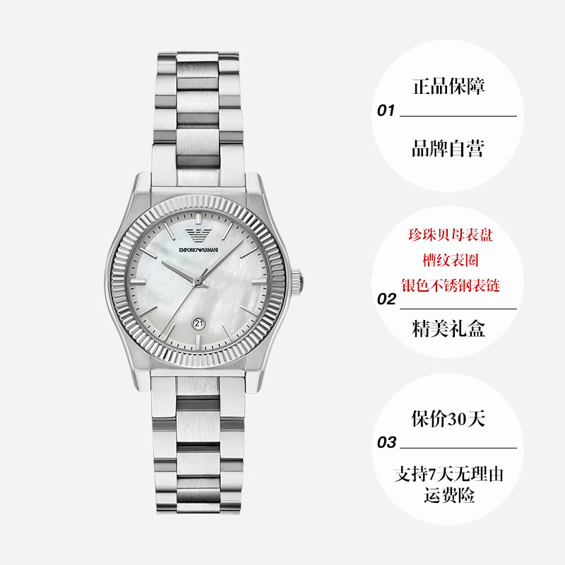 【自营】秋冬新品Armani阿玛尼手表女白月光优雅石英礼物AR11723