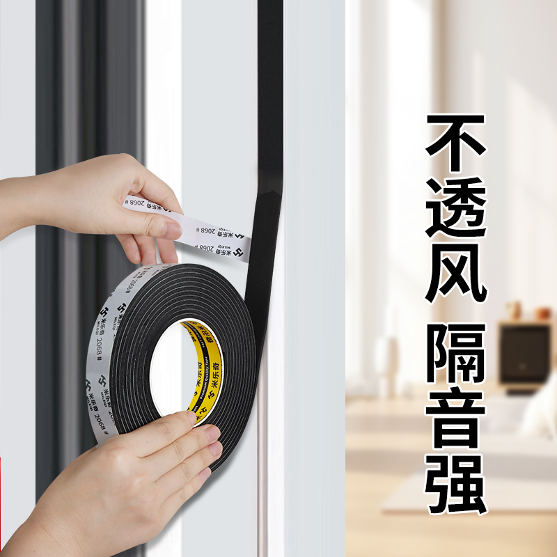 窗户缝隙防风密封胶条泡绵单面密封条强力黑色缓冲海绵胶带防震隔音防撞自粘推拉窗密封条门窗缝隙填补胶带