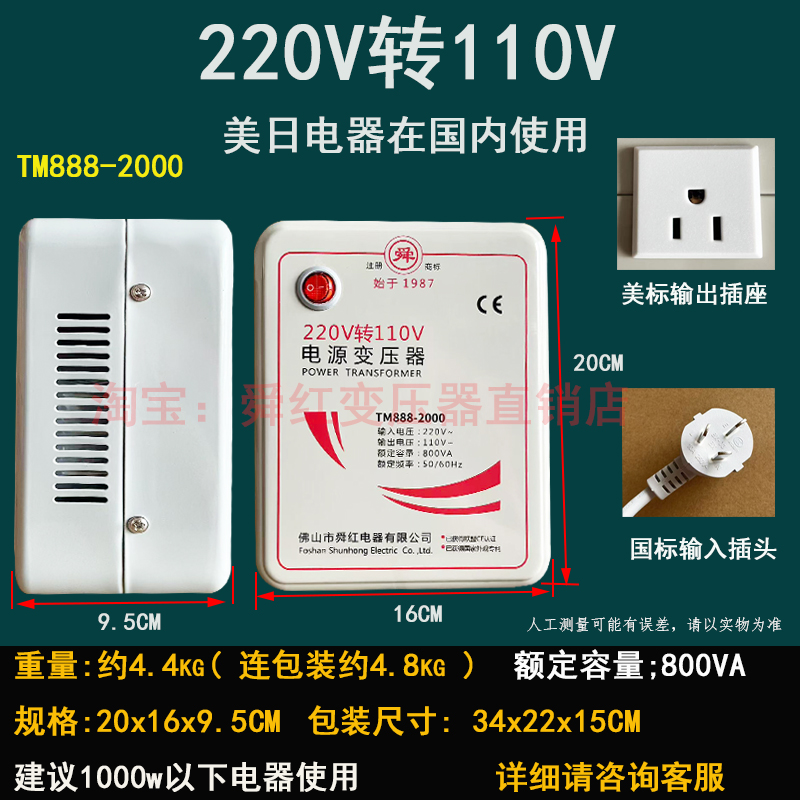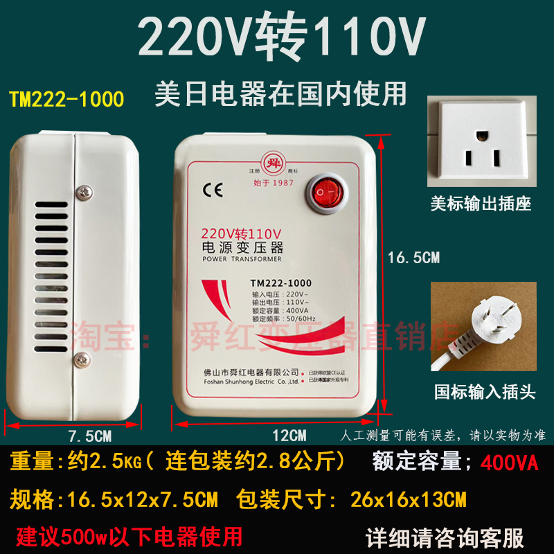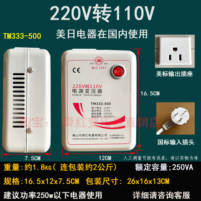 舜红变压器220v转110v100v美日电饭锅吹风机110v转220v电源转换器