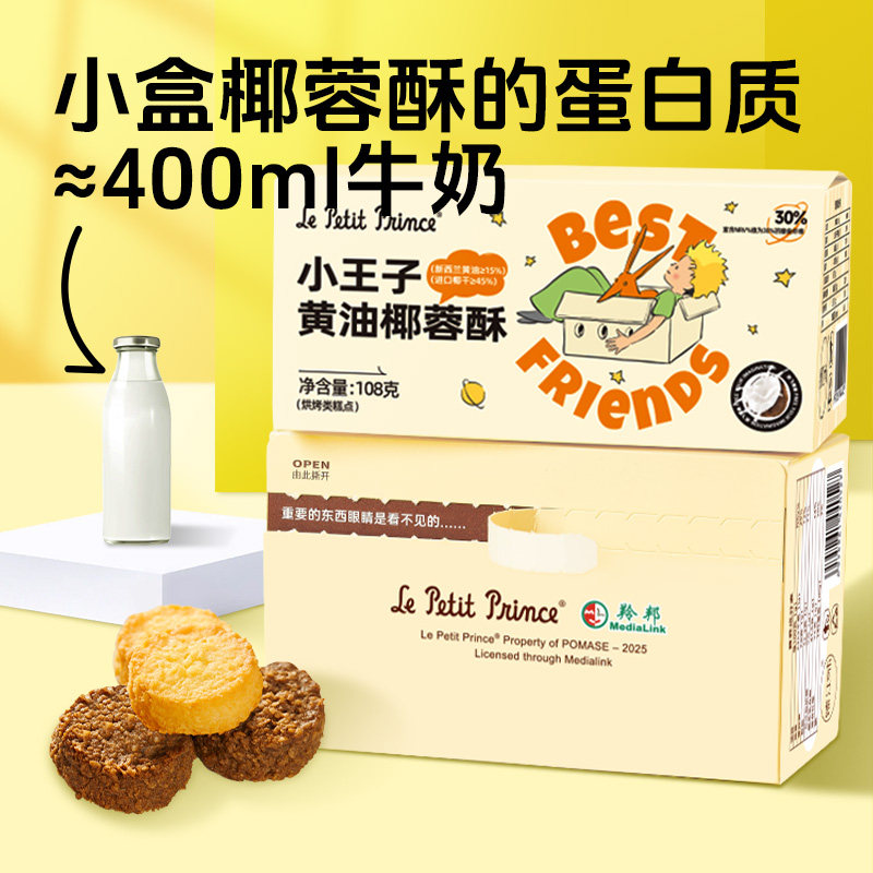 小王子黄油椰蓉酥108g咖啡可可椰子曲奇饼干休闲糕点儿童零食