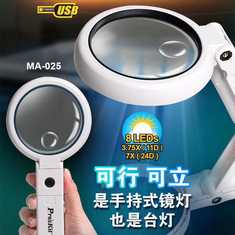 宝工MA-025手持台灯放大镜高清阅读钟表维修扩大镜MA-029