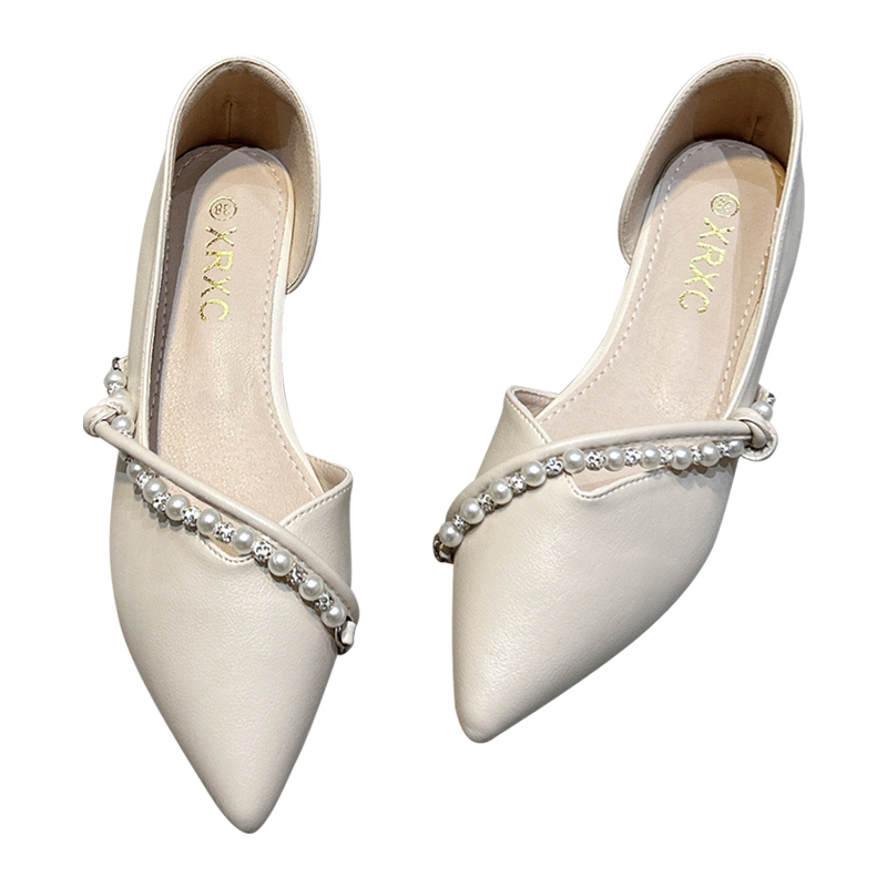 小香风一字带玛丽珍鞋女2025春季新款百搭串珠配裙子仙女平底单鞋