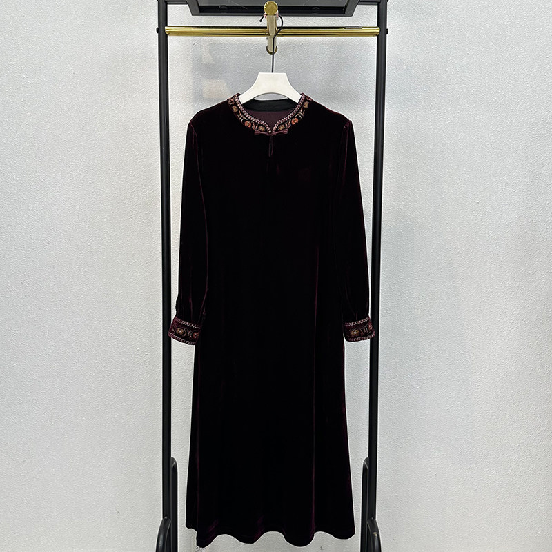 真丝绒连衣裙妈妈2025春新款女装高端中年刺绣高贵改良旗袍裙女装