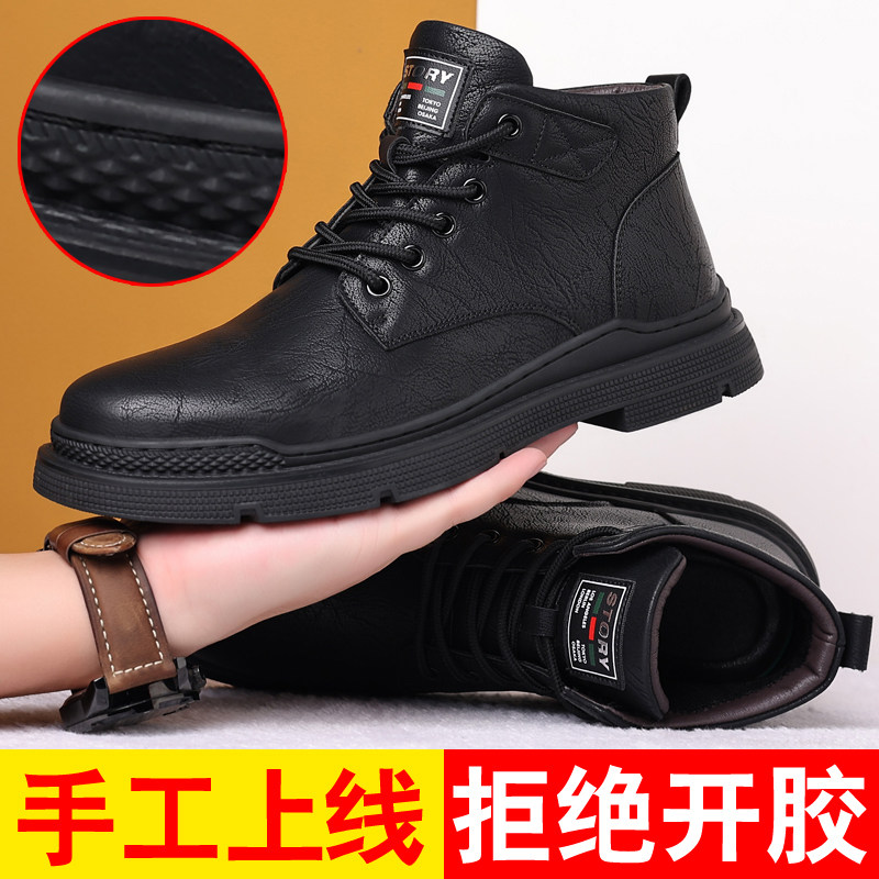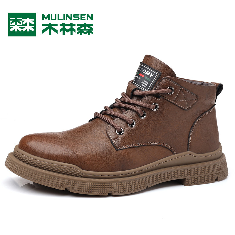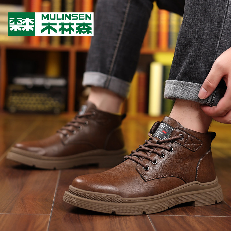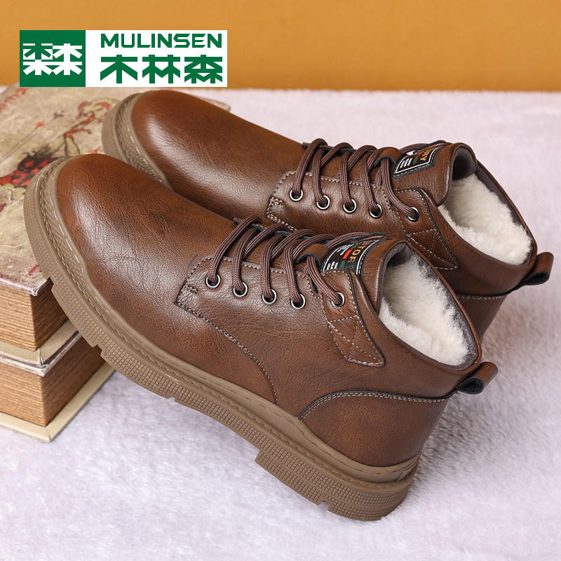 木林森马丁靴男款2025冬季加绒羊毛棉鞋真皮高帮鞋雪地工装男鞋子