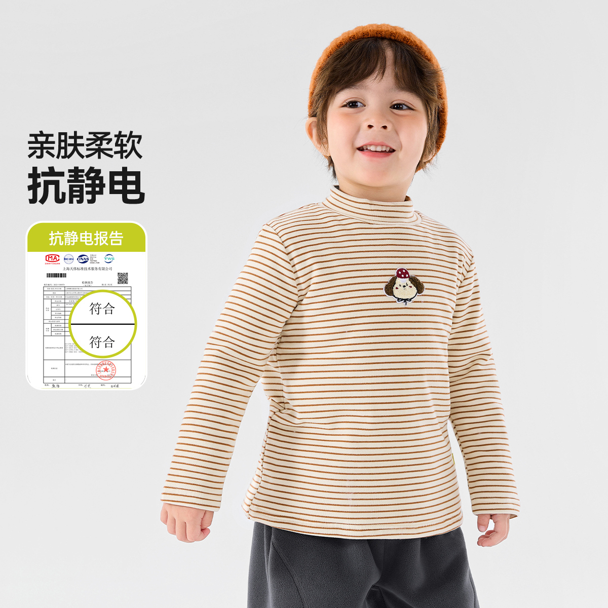 [循环发热]儿童半高领条纹T恤冬季男童打底衫抗静电宝宝长袖t冬款