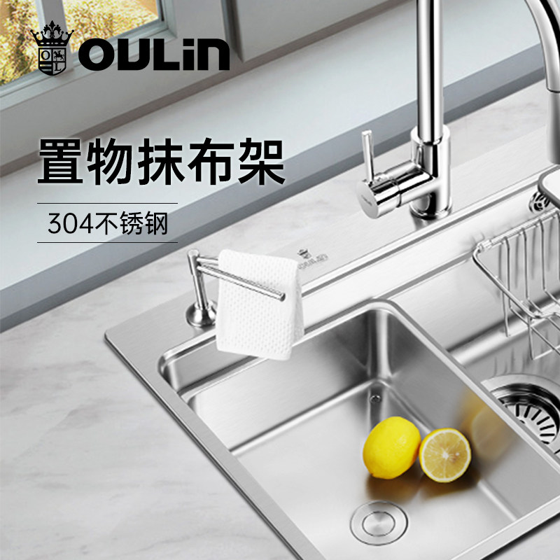 欧琳304不锈钢抹布架 厨房挂件置物架 水槽水池置物洗碗布收纳架