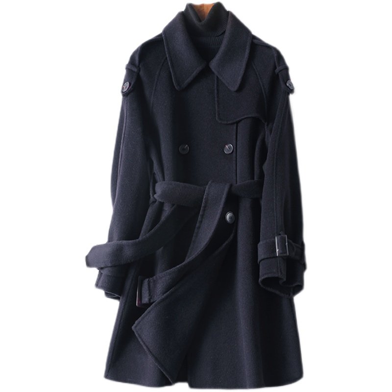 双面羊毛大衣女中长款小个子2025冬新款轻奢系带收腰羊毛呢子外套