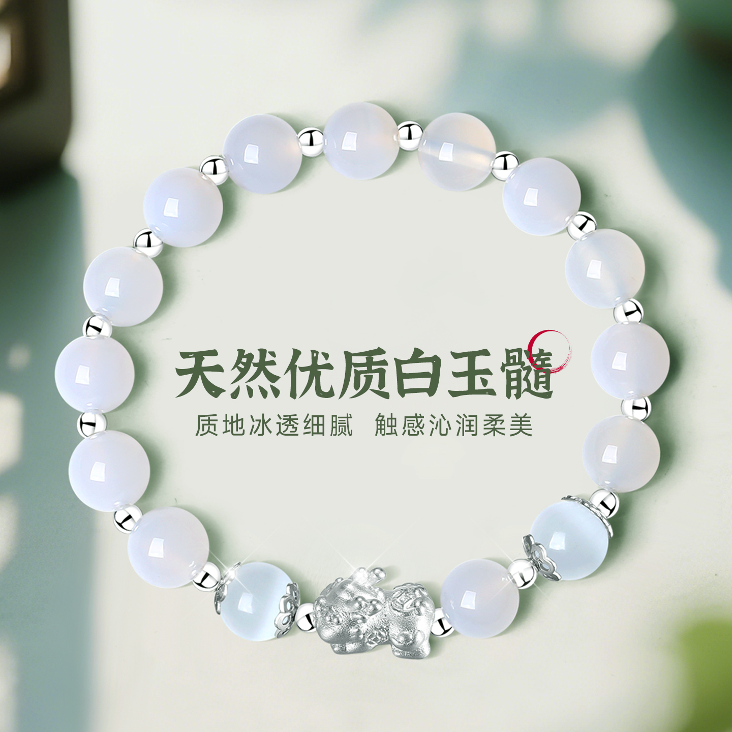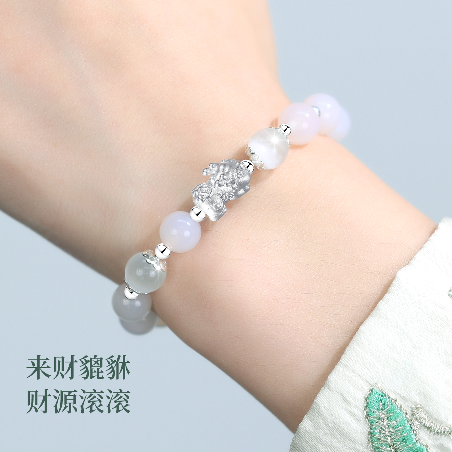 纯银玉髓貔貅手链手串女款女生女白月光手镯新中式国风生日礼物女