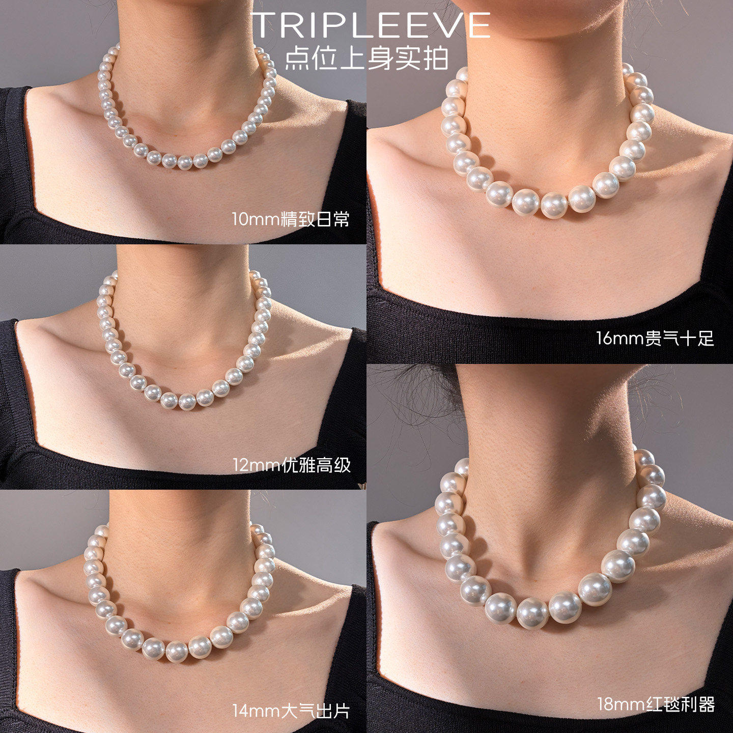 天然澳母贝珍珠冷光澳白龙珠大点位人造海水珍珠项链s925纯银扣头