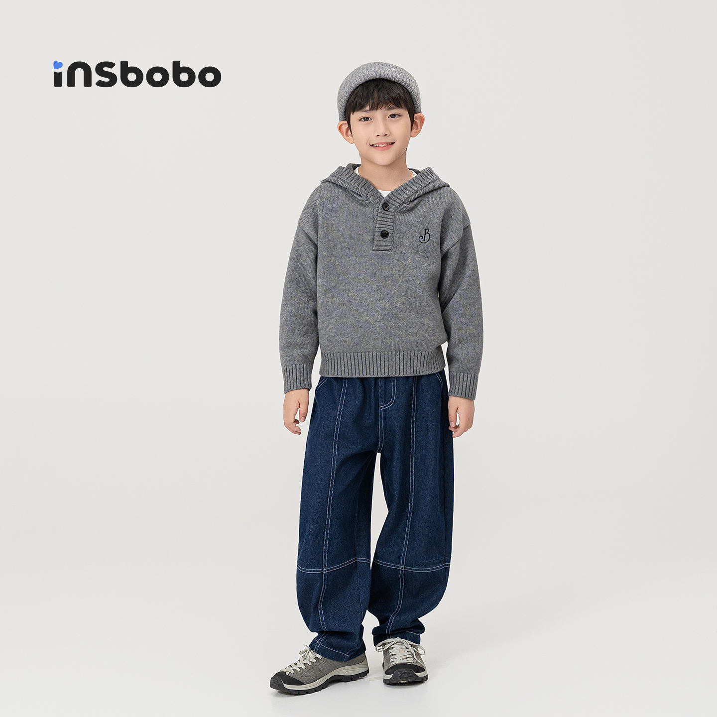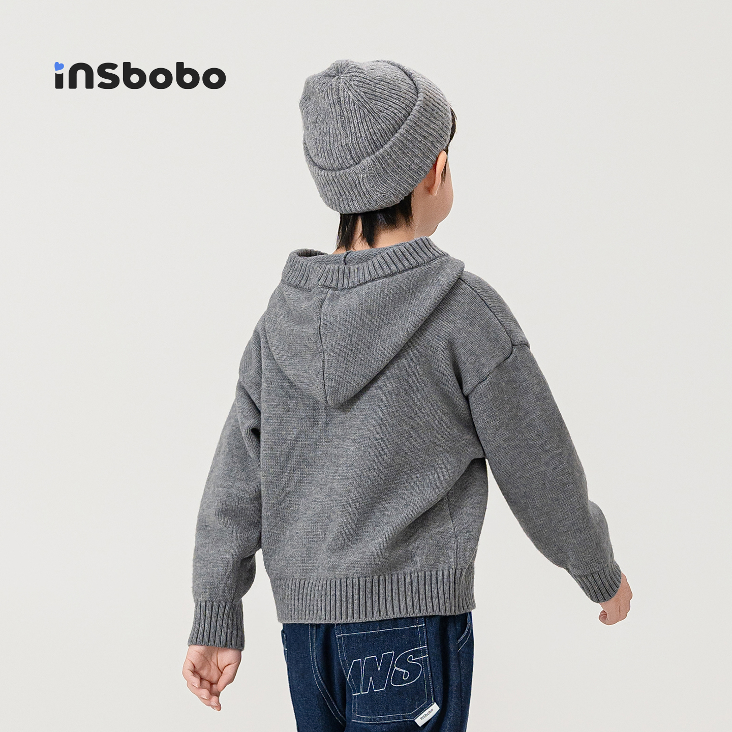 INSbobo童装男童毛衣2025新款儿童针织衫男孩连帽上衣秋装毛线衣
