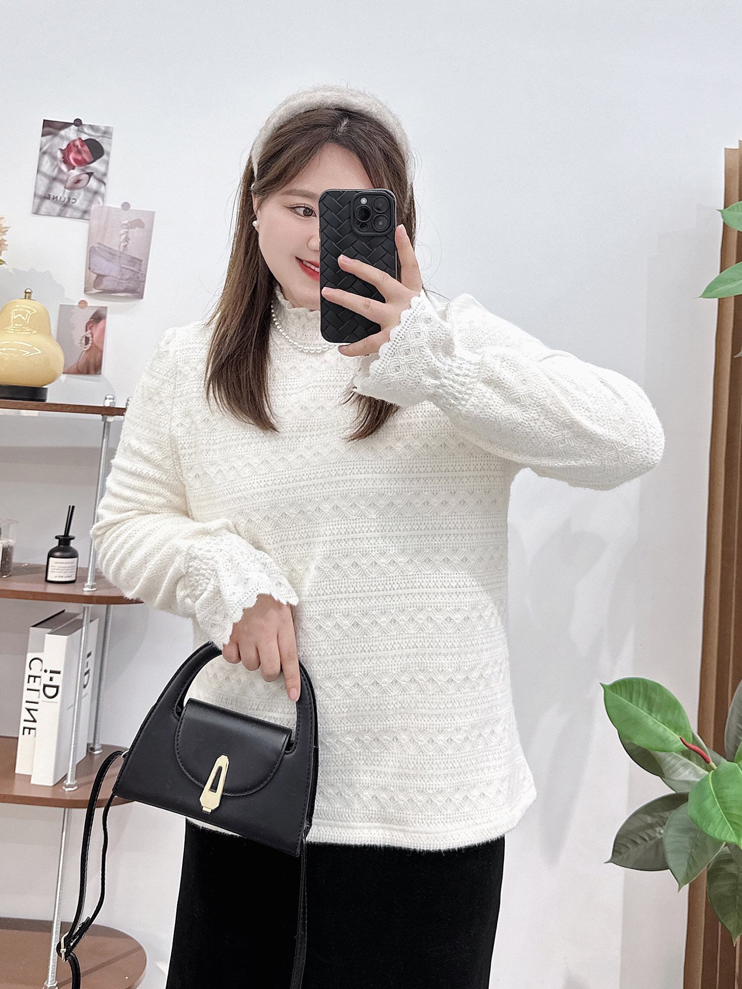 宛宛大码女秋冬季洋气加绒加厚蕾丝打底衫胖mm遮肚显瘦高级感上衣