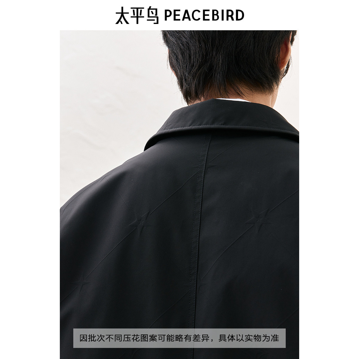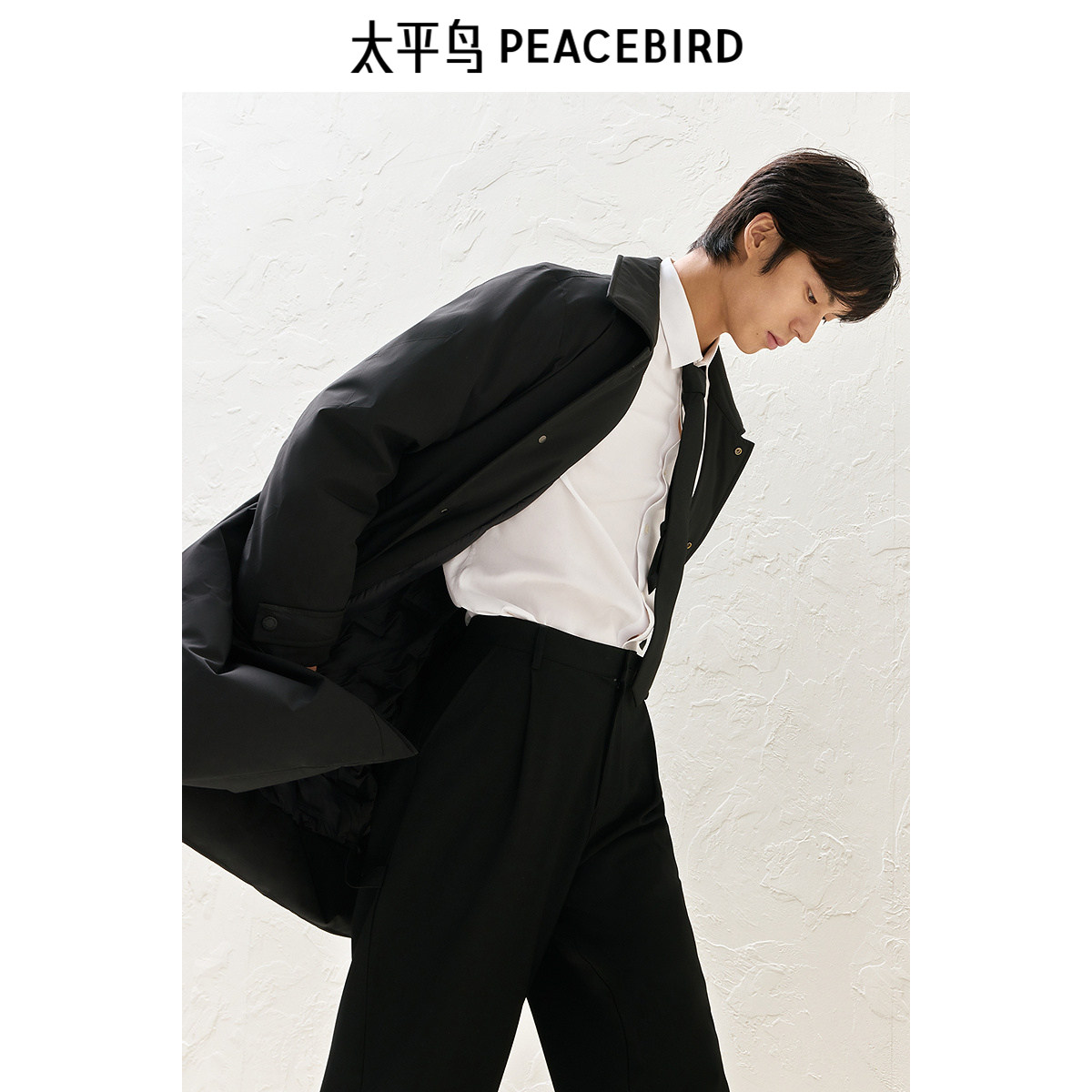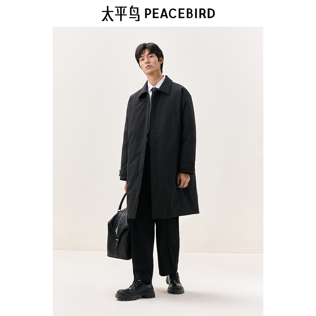 太平鸟男装风衣羽绒服男长款冬季新款黑色商务保暖翻领外套